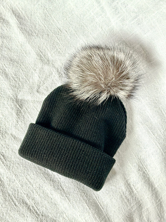 Beanie w Silver Fox Pom